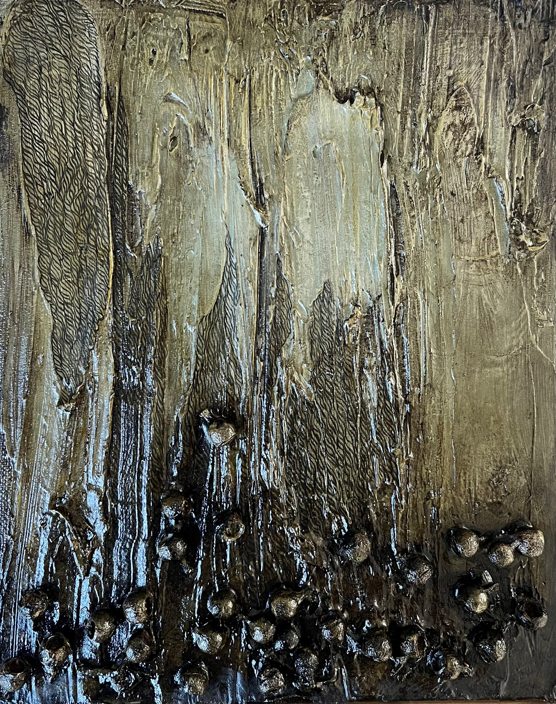 "Where Seeds Settle" is a quiet meditation on place, presence and potential. Gum nuts gather at the base like memories resting in the soil - unmoving, yet full of quiet life. This works honours the stillness before growth, and the strength in simply being where you’re meant to be.