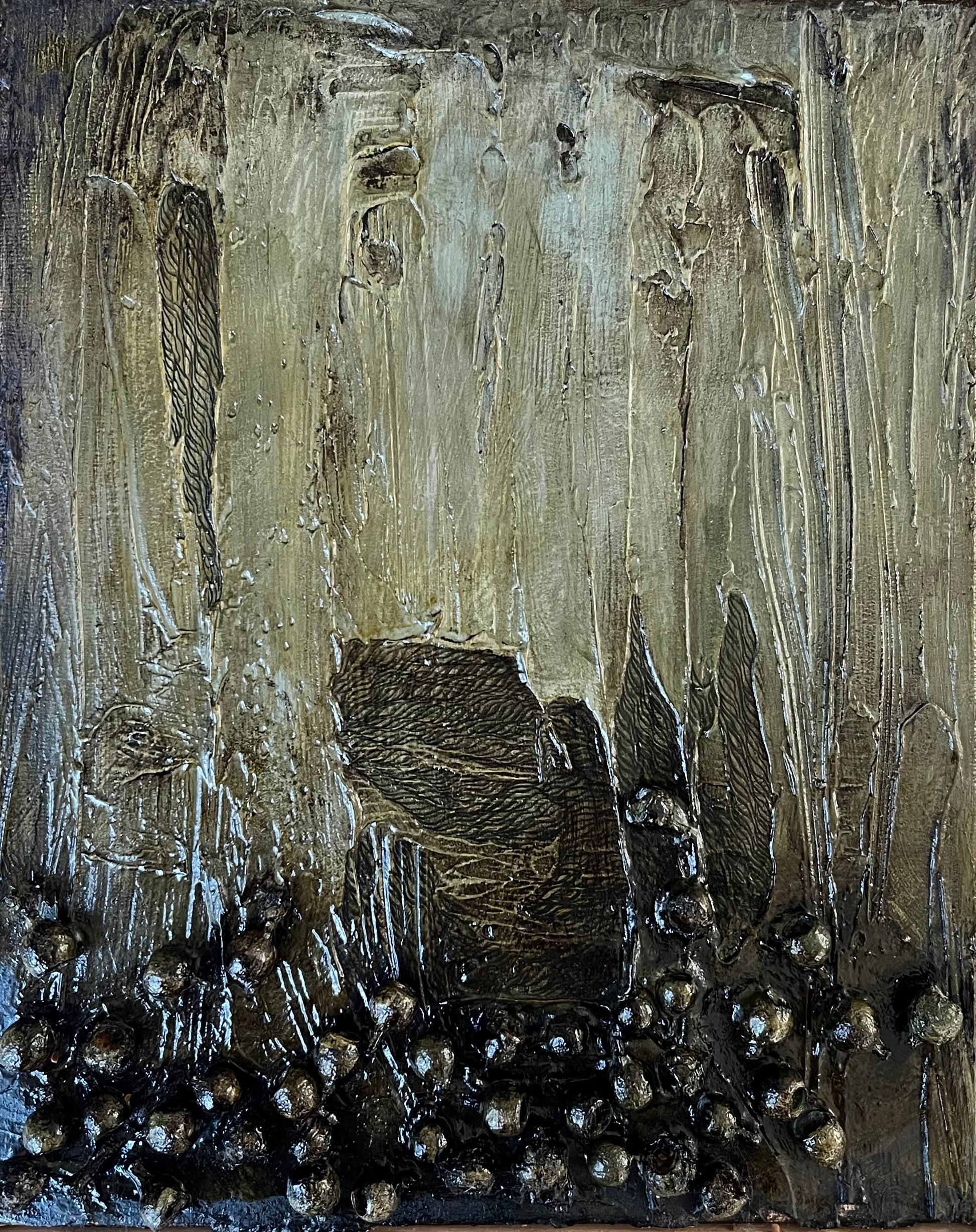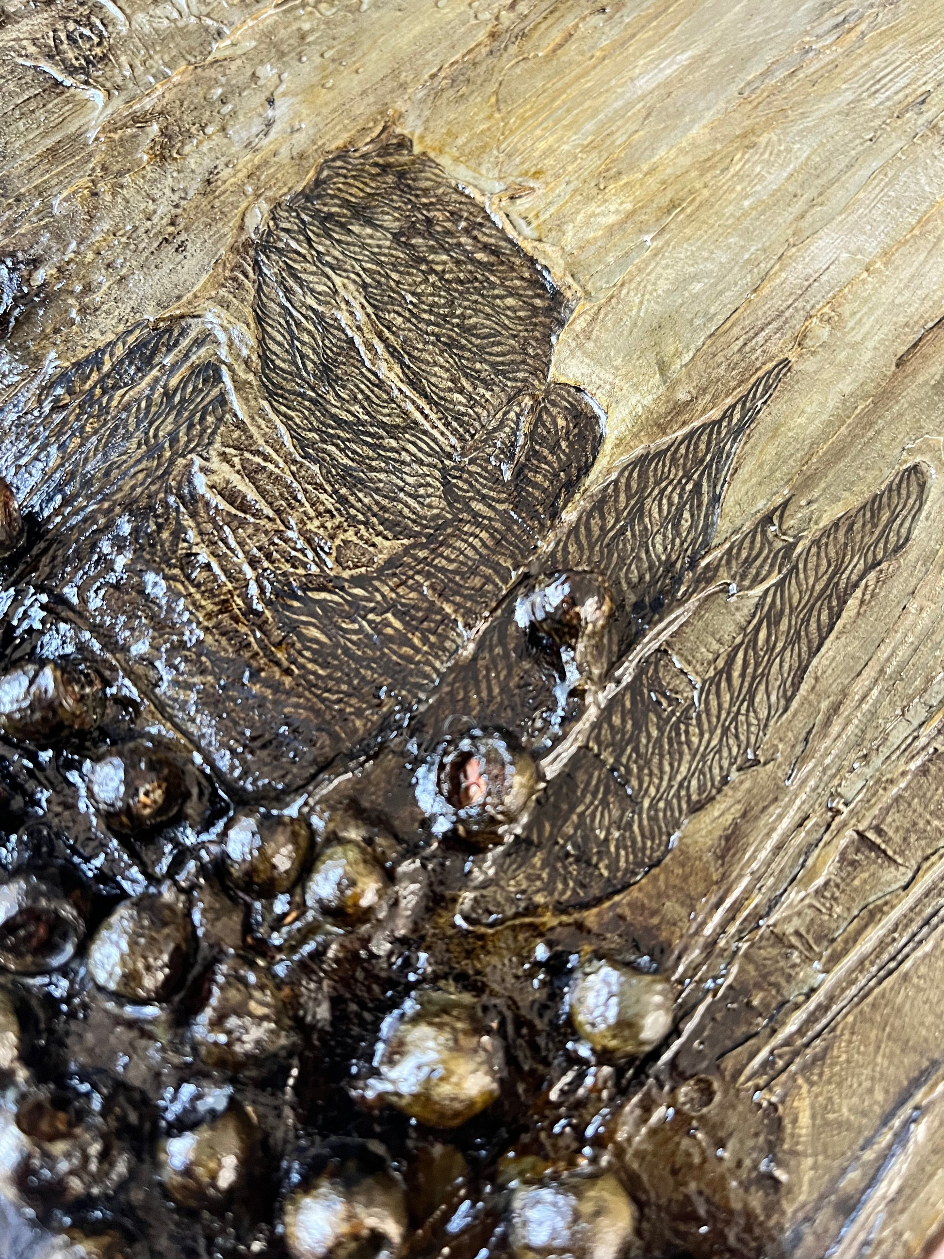 "Where Seeds Settle" is a quiet meditation on place, presence and potential. Gum nuts gather at the base like memories resting in the soil - unmoving, yet full of quiet life. This works honours the stillness before growth, and the strength in simply being where you’re meant to be.